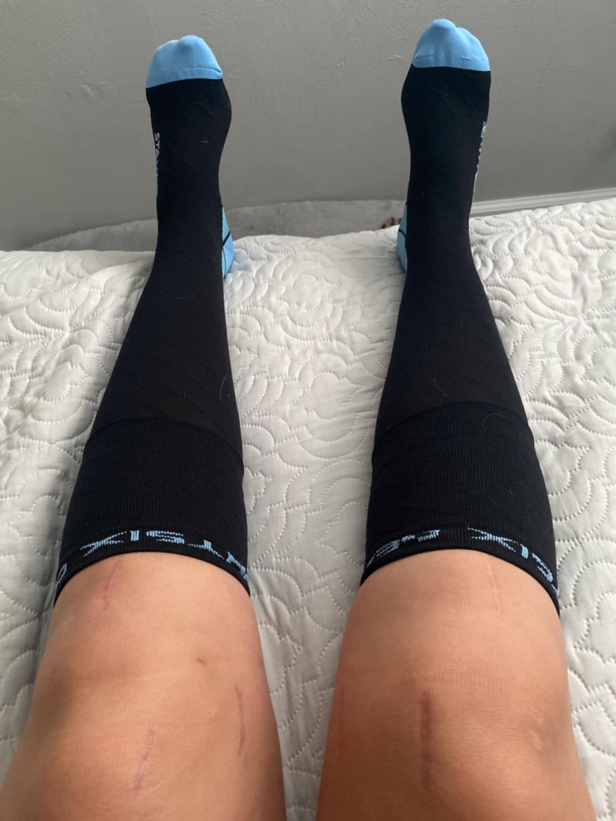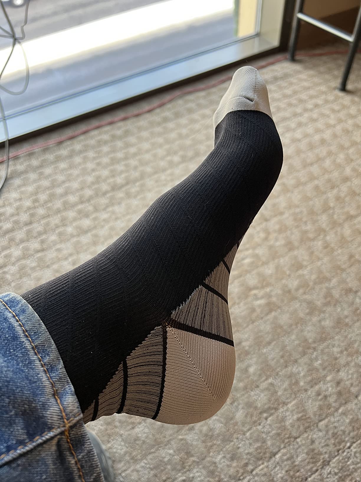 I love these compression socks. I have bought other compression socks and they are hard to put own and take off. These are the easiest compression socks I’ve ever bought and since I shattered my right ankle and I have been able to wear them for the last month it has helped with my swelling in my foot. I would recommend these socks to everyone.